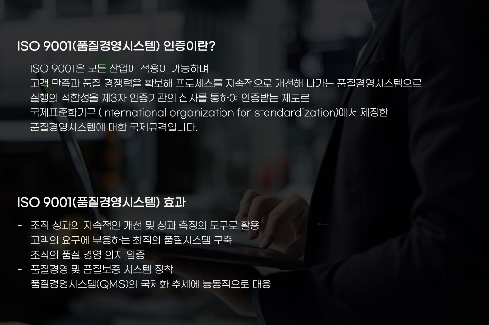 ISO ÀÎÁõÀº ÇØ´ç ±âÁØÀ» ¸¸Á·ÇÏ´Â °æ¿µ½Ã½ºÅÛÀ» Á¦3ÀÇ ±â°üÀÌ ½É»çÇÏ¿© ÀûÇÕ¼ºÀ» ÀÎÁõÇÏ´Â Á¦µµÀÔ´Ï´Ù.